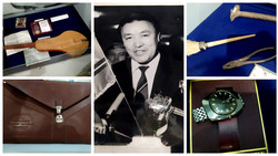 Сүрөт: Тунгуч премьер-министр Насирдин Исановдун комузу, кол сааты, портфели жана шаймандары
