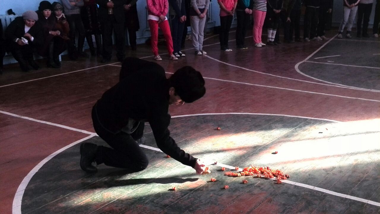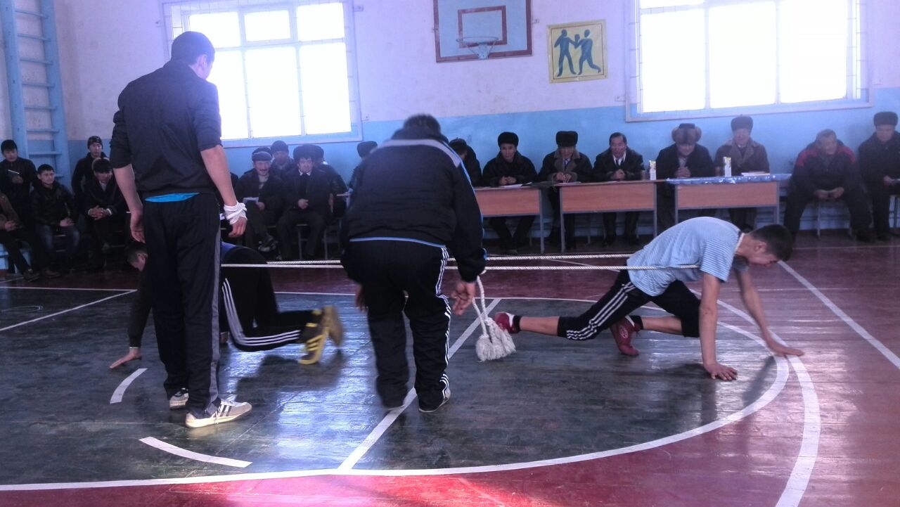 Тренер спортшколы из Нооката А.Таиров ознакомил учителей и учеников школы Нойгут с правилами национальной игры «Ордо» (фото)