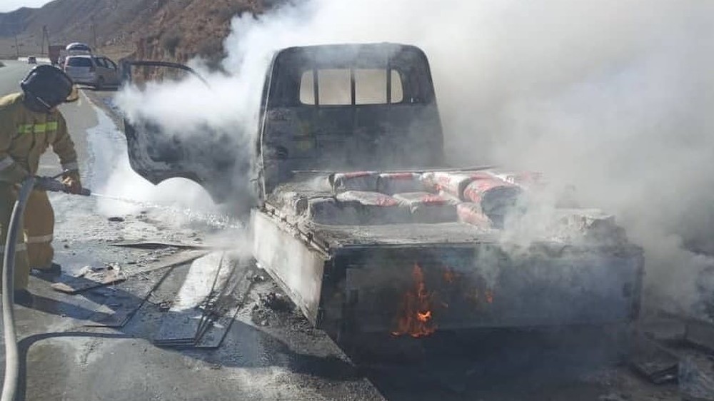 На трассе Ош—Баткен—Раззаков сгорел «Портер»