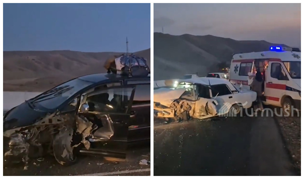 На автодороге Ош—Ноокат—Раззаков столкнулись два автомобиля: Один наполовину всмятку