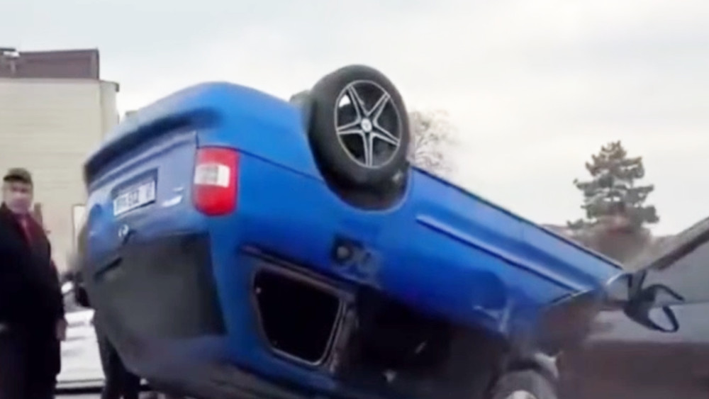 Автомобиль перевернулся после ДТП в Токмоке. Видео